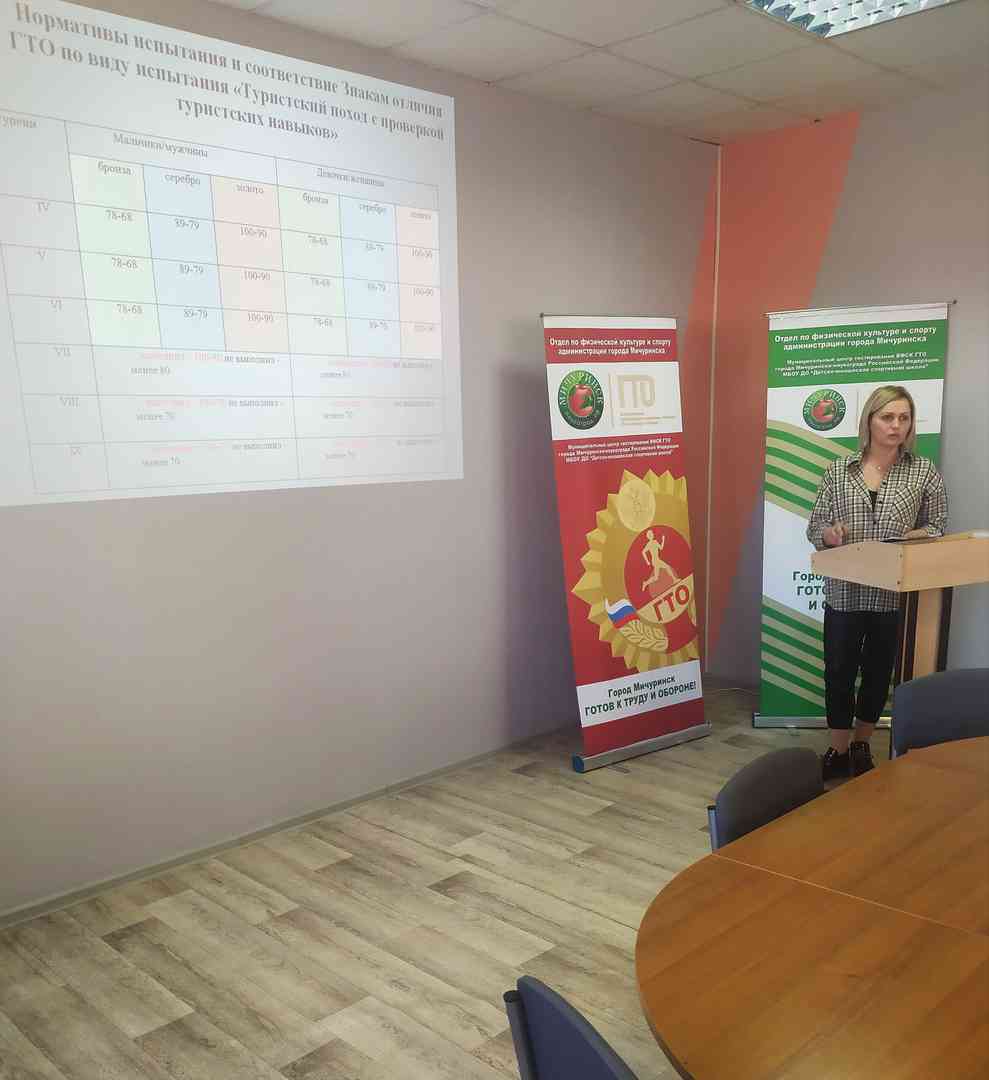 Затем взяла слово представитель судейской коллегии муниципального центра тестирования по выполнению видов испытаний (тестов), нормативов ВФСК ГТО г. Мичуринска Ольга Григорьевна Буриева. Она рассказала об основных требованиях к выполнению такого испытания комплекса, как туристский поход с проверкой туристских навыков, и критериях его оценивания.